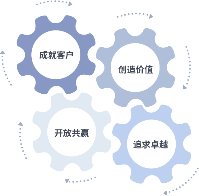 成就客户是一切决策的出发点,创造价值是衡量所有工作的标准,追求卓越是J9.COM做事做人的态度,开放共赢是J9.COM的格局也是最终的结果。价值观的齿轮环环相扣,推动着组织里的每个人不断向前。